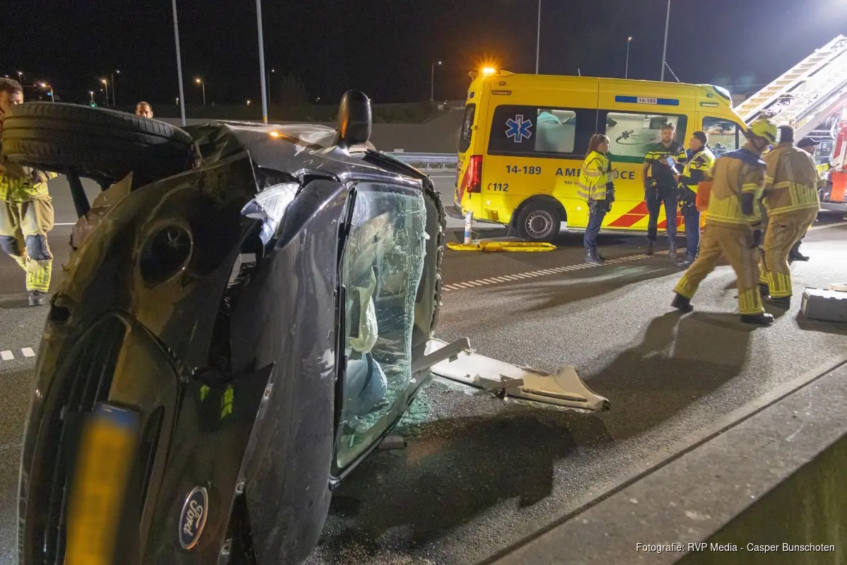 Meerdere hulpdiensten werden opgeroepen. Een auto lag op zijn kant, en de automobiliste zat bekneld in het voertuig. De brandweer heeft het dak van de auto opengeknipt en zo kon de vrouw uit de auto worden bevrijd.