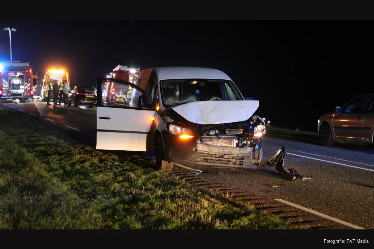 Drie voertuigen kwamen ter plaatse door nog onbekende oorzaak met elkaar in botsing. Twee van de voertuigen botste frontaal op elkaar.