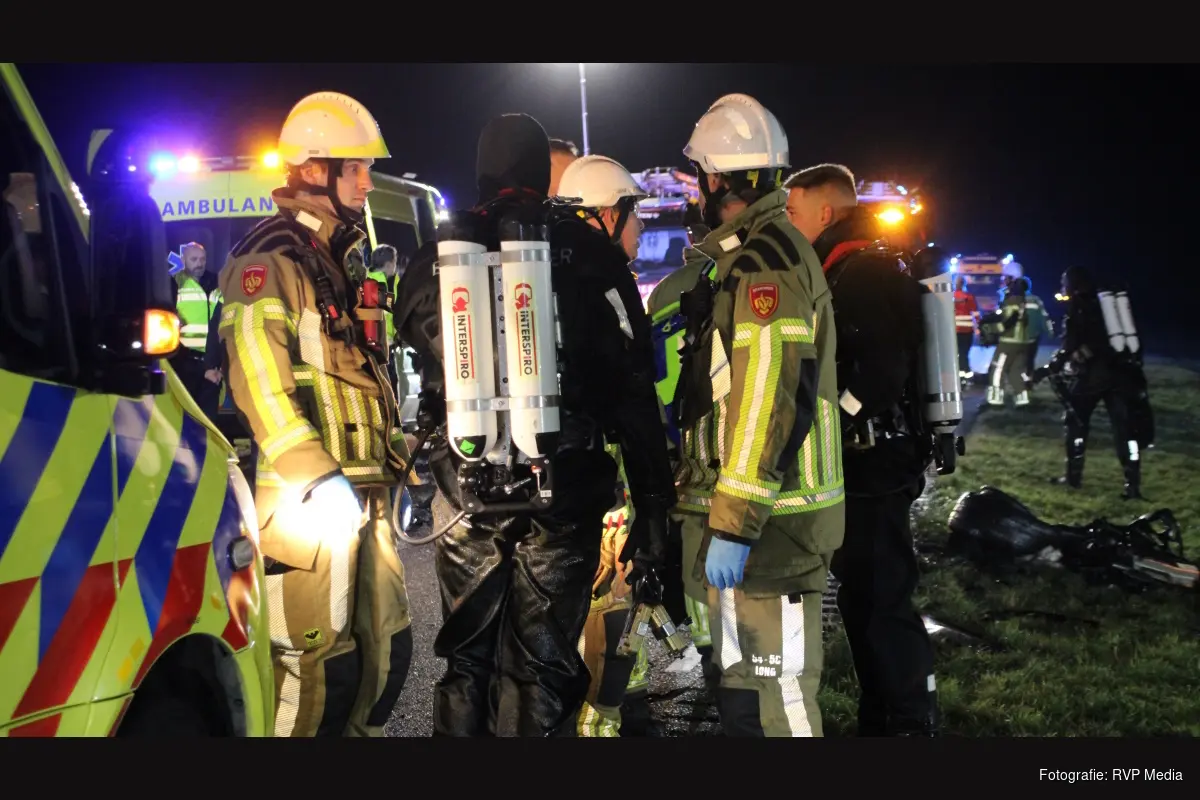 De weg is vanwege de hulpverlening, bergingswerkzaamheden en onderzoek volledig afgesloten.