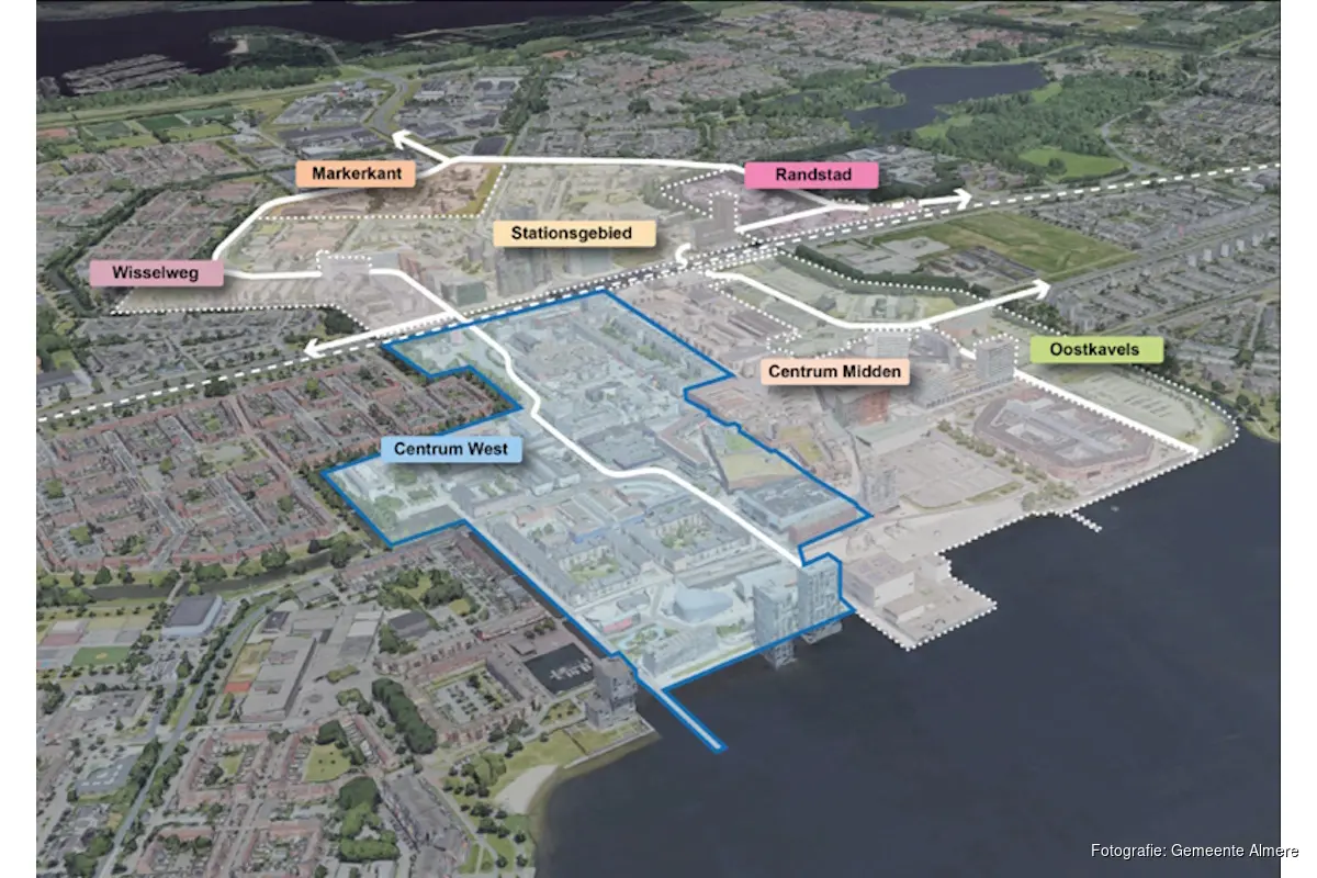 ALMERE - Het college van burgemeester en wethouders stelt de gemeenteraad voor om het 'historische hart' van de binnenstad, Centrum West, een grondige opknapbeurt te geven. Daarmee moet het Almeerse stadscentrum een flinke impuls krijgen. Met de komst van 1.500 tot 3.000 nieuwe woningen, meer groen, aantrekkelijke voorzieningen en levendige straten, groeit dit deel van het centrum uit tot een bruisende stadswijk.