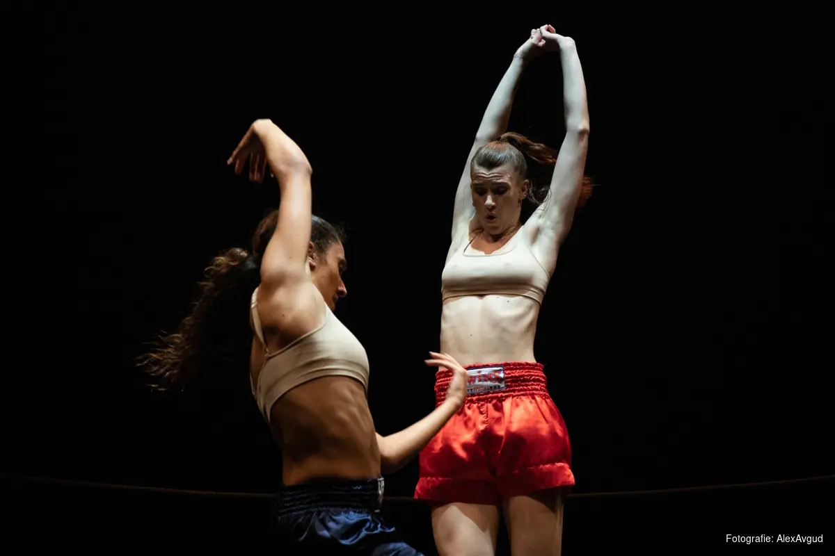 In een boksring midden in de zaal ontvouwt zich een zinderend duel tussen vier dansers. Soms lijkt het een wedstrijd, soms een omhelzing. Lichamen cirkelen, botsen en verstrengelen, begeleid door een soundscape die beweegt van elektronische spanning tot het barokke Gloria van Händel.